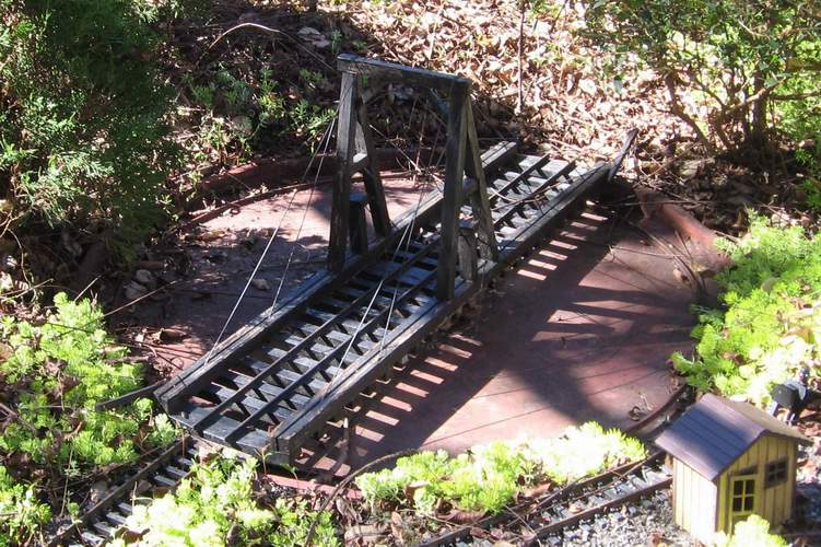 The drawing resembles actual practice, as shown in various model railroad books and magazines, and is intended to look realistic from a few feet away. The construction has been simplified to make it sturdy and ease building, but not to the point where the structure looks toy like. This turntable is based on the Southern Pacific turntable at Medoc, California. It is very close to scale but uses a simple turning mechanism that is readily available commercially; a household base, commonly used for lazy susans in kitchen cabinets. |